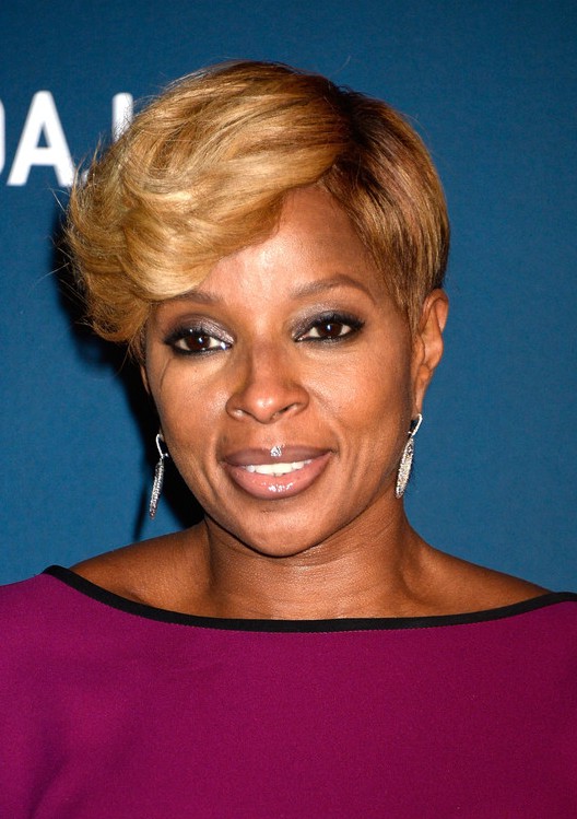 African American Short Blonde Haircut with Bangs from Mary J. Blige /Getty images