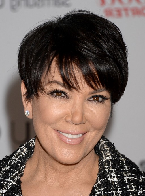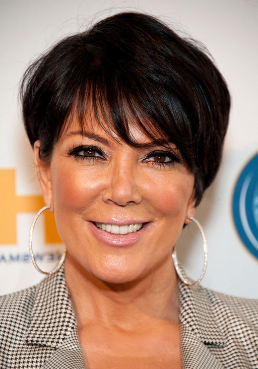Celebrity Kris Jenner Hairstyles: Short Short Black Haircut with Straight Across Bangs /Getty images