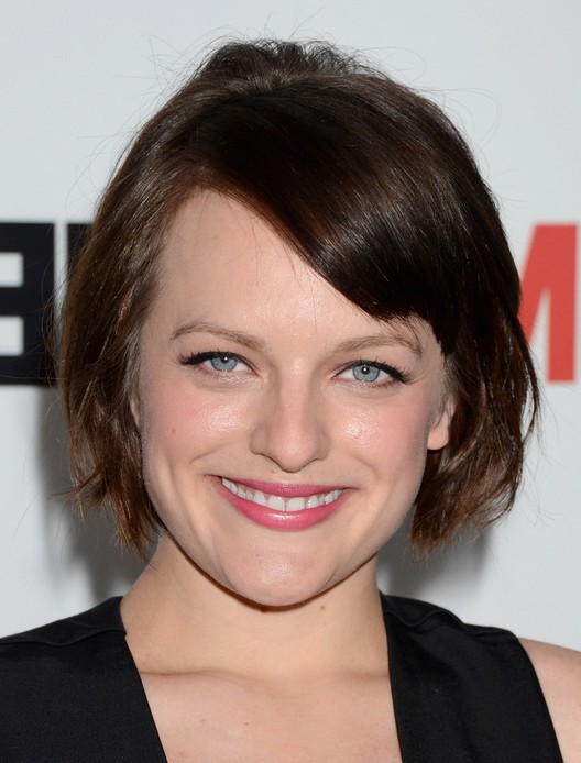 Elisabeth Moss Chic Short Haircut with Side Swept Bangs for Summer /Getty images