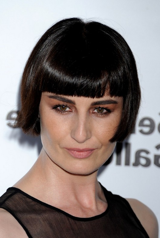 Erin O’Connor Haircut: Short Straight Black Hairstyle with Side Swept Bangs /Getty images