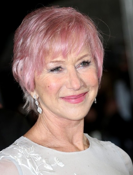 Helen Mirren Haircuts: Short Pink Haircut with Bangs for Women Over 70 /Getty image
