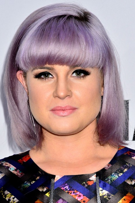 Kelly Osbourne Hairstyles: Short Purple Bob Haircut with Full Blunt Bangs /Getty images