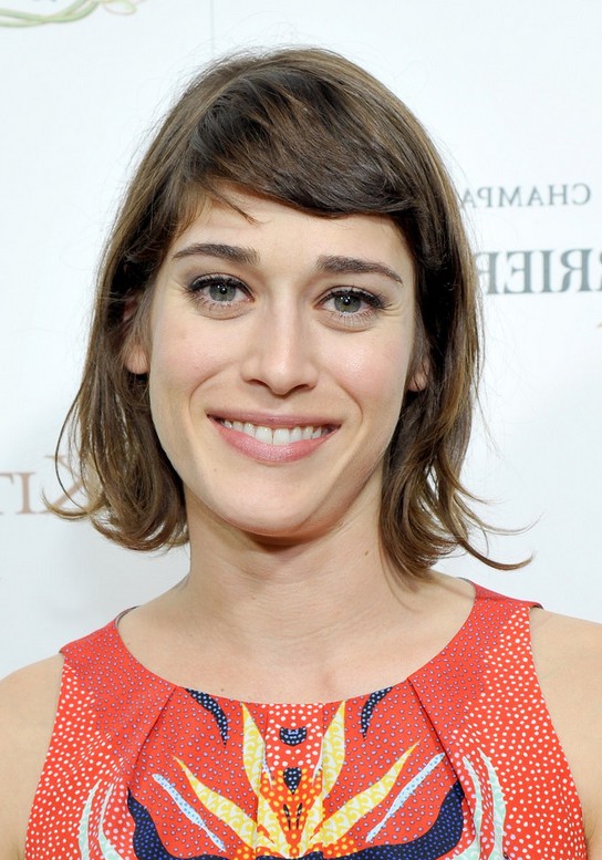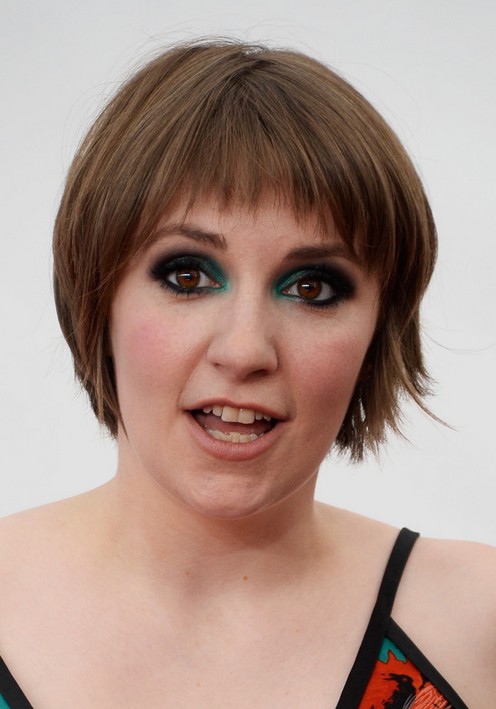 Lena Dunham Haircut: Simple Short Straight Haircut with Choppy Bangs /Getty images