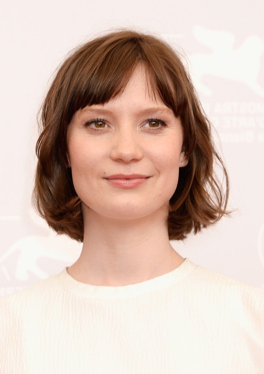 Mia Wasikowska Hairstyles: Simple Easy Short Hairstyle with Wispy Bangs /Getty images
