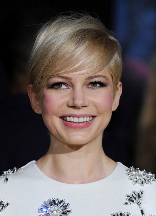 Michelle Williams Beautiful Short Haircut with Long Bangs for Wedding /Getty images