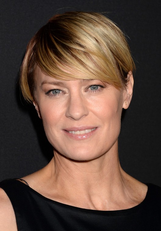 Robin Wright Haircut: Short Straight Haircut with Side Swept Bangs /Getty images