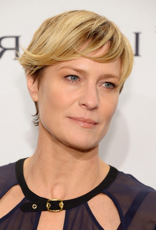 Robin Wright Haircut: Short Pixie Cut with Side Swept Bangs for Summer /Getty images