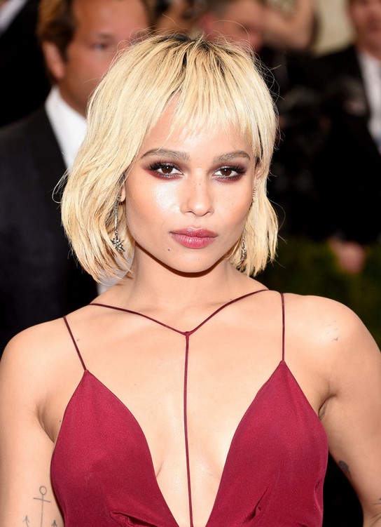 Zoe Kravitz Haircut: Short Blonde Bob Cut with Wispy Bangs /Getty images