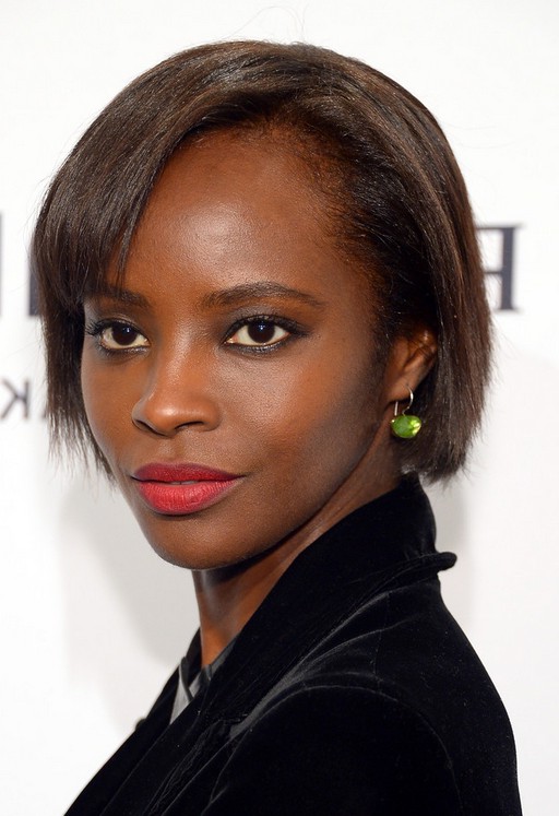 Erin O’Connor Haircut: Short Straight Black Hairstyle with Side Swept Bangs /Getty images
