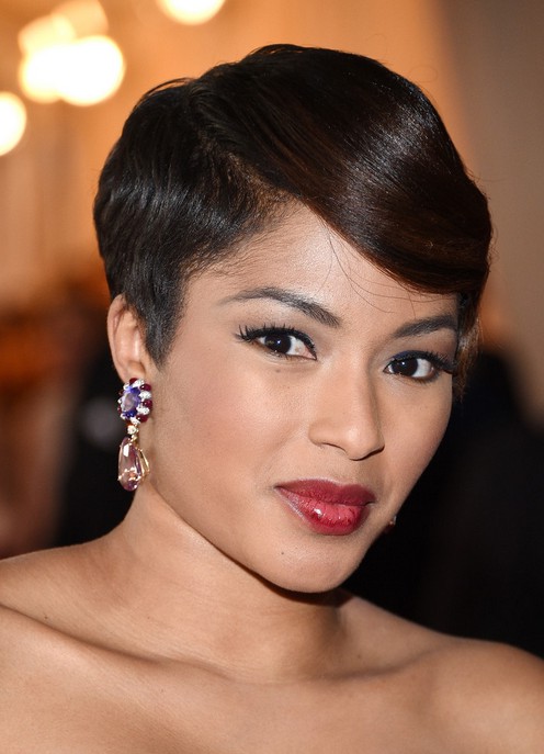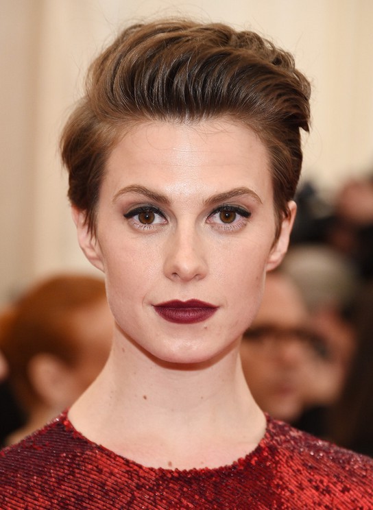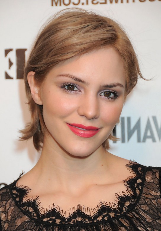 Miroslava Duma Layered Side Parted Short Haircut with Side Swept Bangs