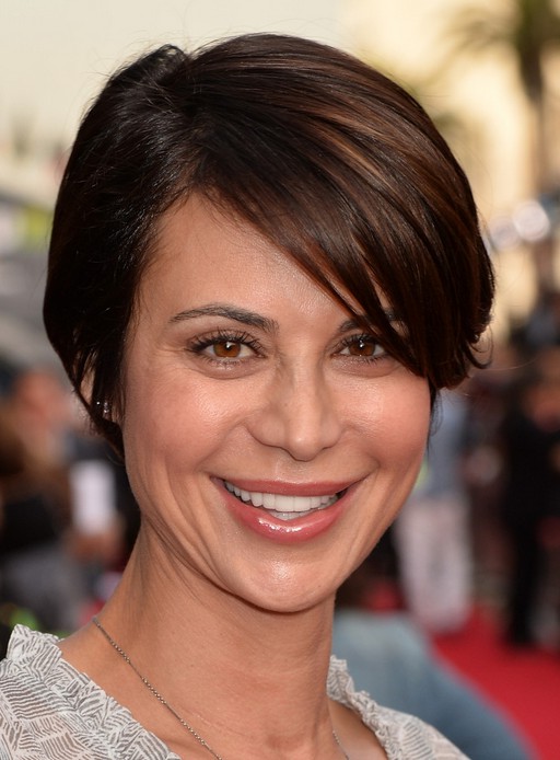 Catherine Bell Side Parted Straight Cut for Short Hair /Getty images