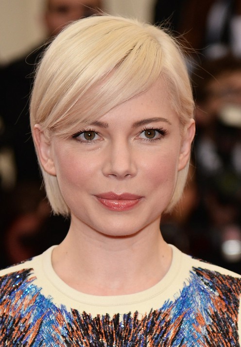 Michelle Williams Side Parted Short Straight Haircut with Bangs