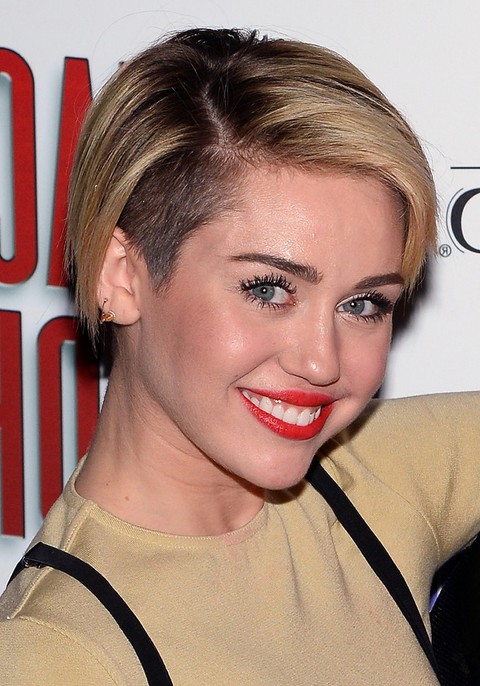 Miley Cyrus Cute Short Side Parted Straight Cut /Getty images