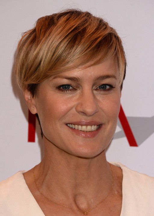 Robin Wright Side Parted Layered Short Straight Cut with Bangs /Getty images