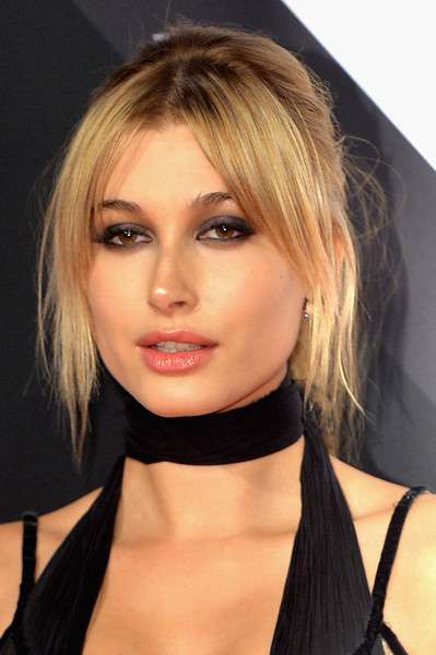 Loose ponytail look chic with the smoky eyes and peachy lips. You can copy this look for work or for date.