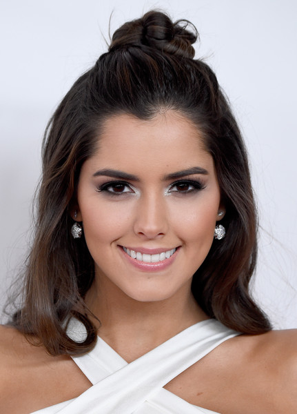 The neat top knot will never go out of fashion and you can make it more stylish by doing a stunning makeup. Becuase it isjust the bronze eye shadow, peachy cheeks and red lips that turn the girlish hairstyle into a faddish hair look.
