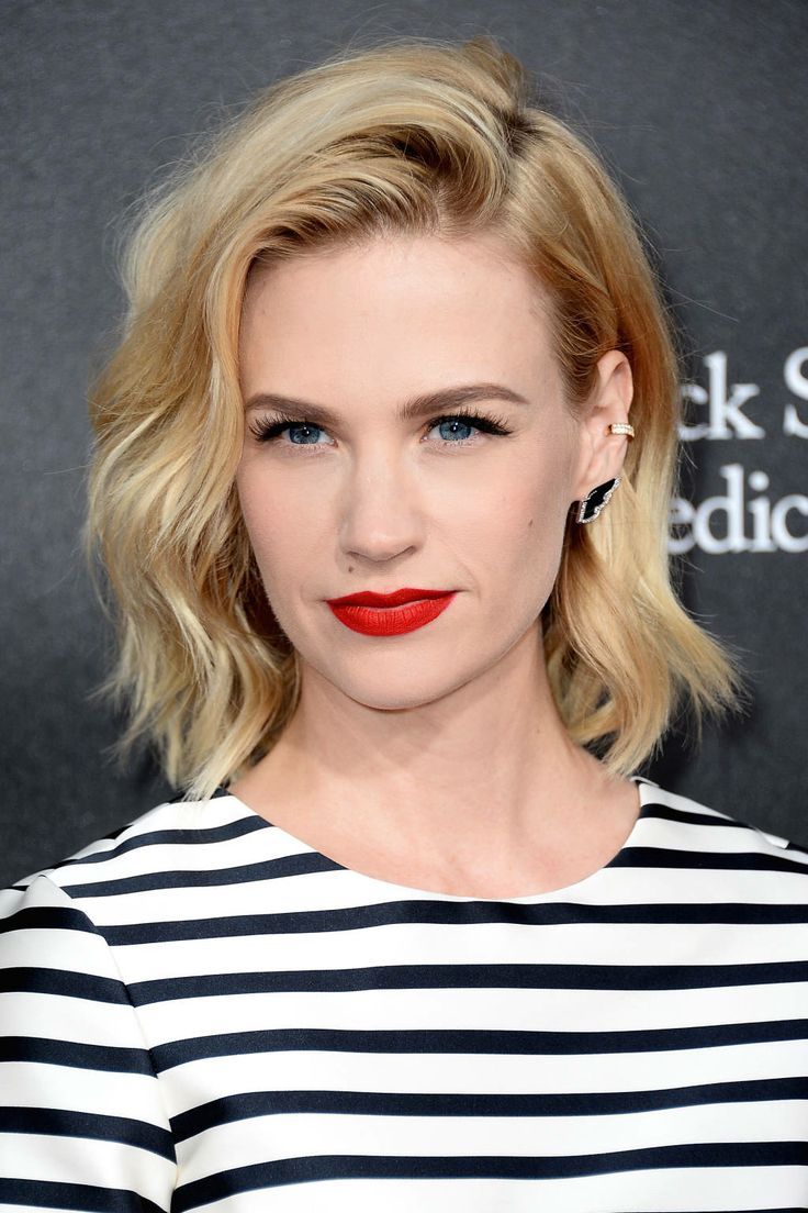 This blonde wavy bob is quite modern with the pretty lips. It’s great to copy for any occasion.
