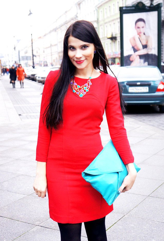 There are many ways to make a fantastic combo with the red dress. A simple red dress with a pair of black high heels is sexy enough for a date. Or you can go for a chicer look by wearing a pair of golden pumps and taking a small clutch with you. If your date is arranged in the evening, then you may put on a classic black coat, which is a nice piece for the red colored dress. For a more sophisticated look, you may put on a black or white fur coat instead of the simple coat. The long dress is more stunning for an elegant Valentine’s look.